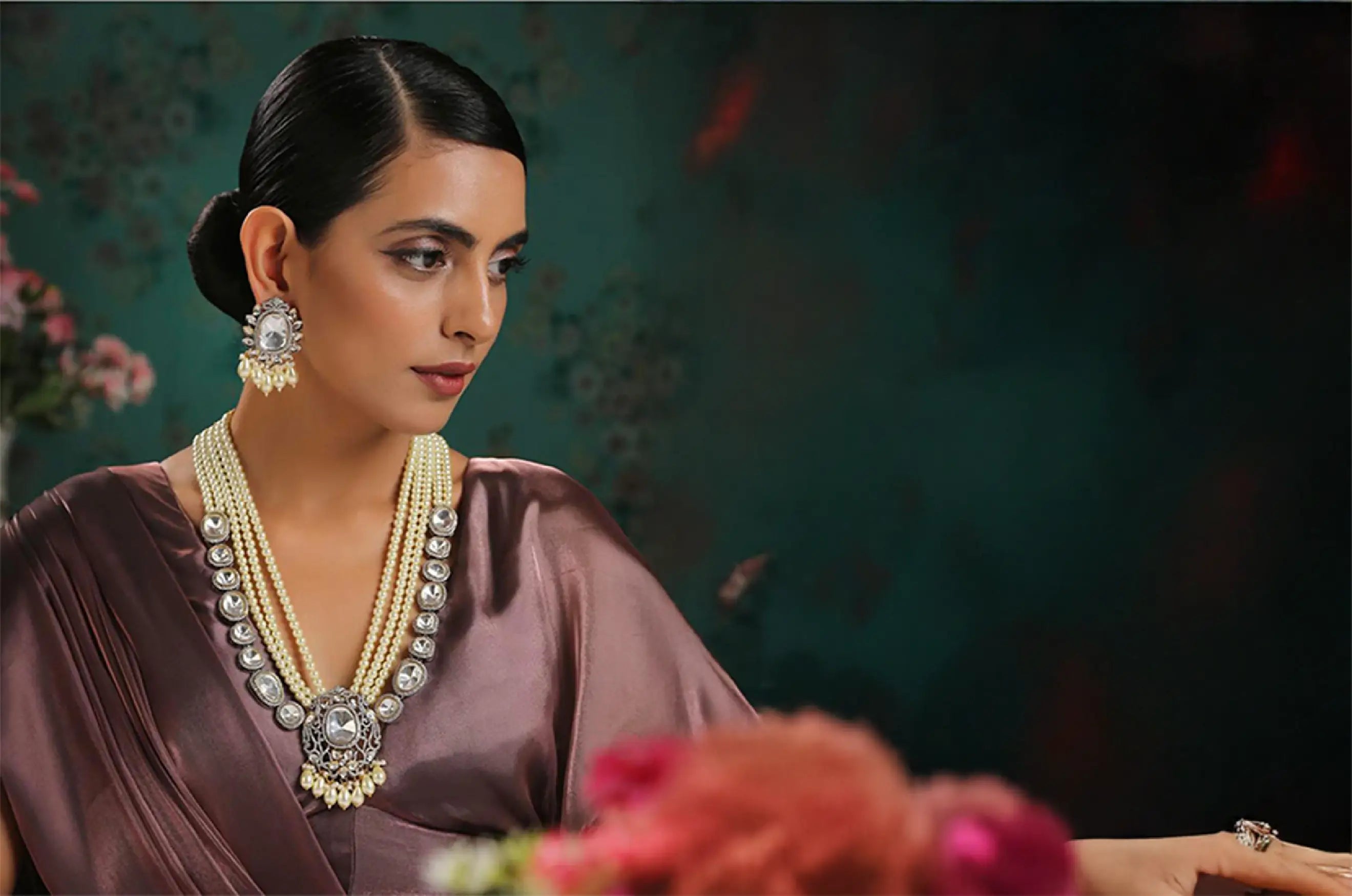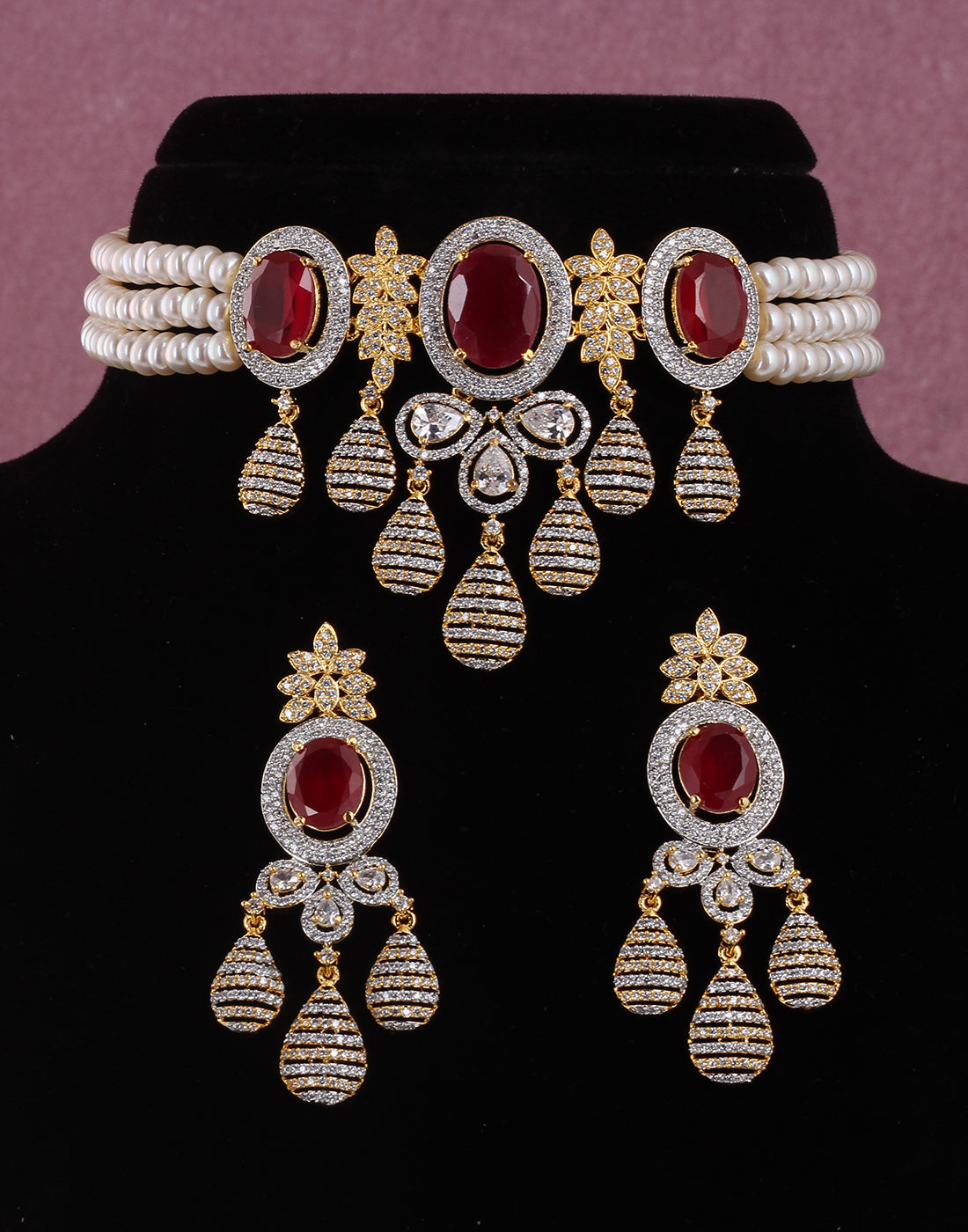 Cz Stone Studded Necklace Set With Real Pearl Drops With Certificate(D.No ADPRLS844)