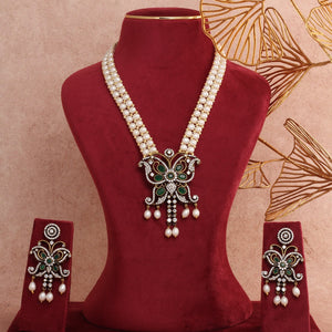 - Pendant Set Information - Made With Micro Size AD/Zirkon Stones Studded In It With Base Of Silver N Alloy Metal