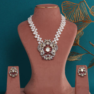 - Pendant Set Information - Made With Micro Size AD/Zirkon Stones Studded In It With Base Of Silver N Alloy Metal