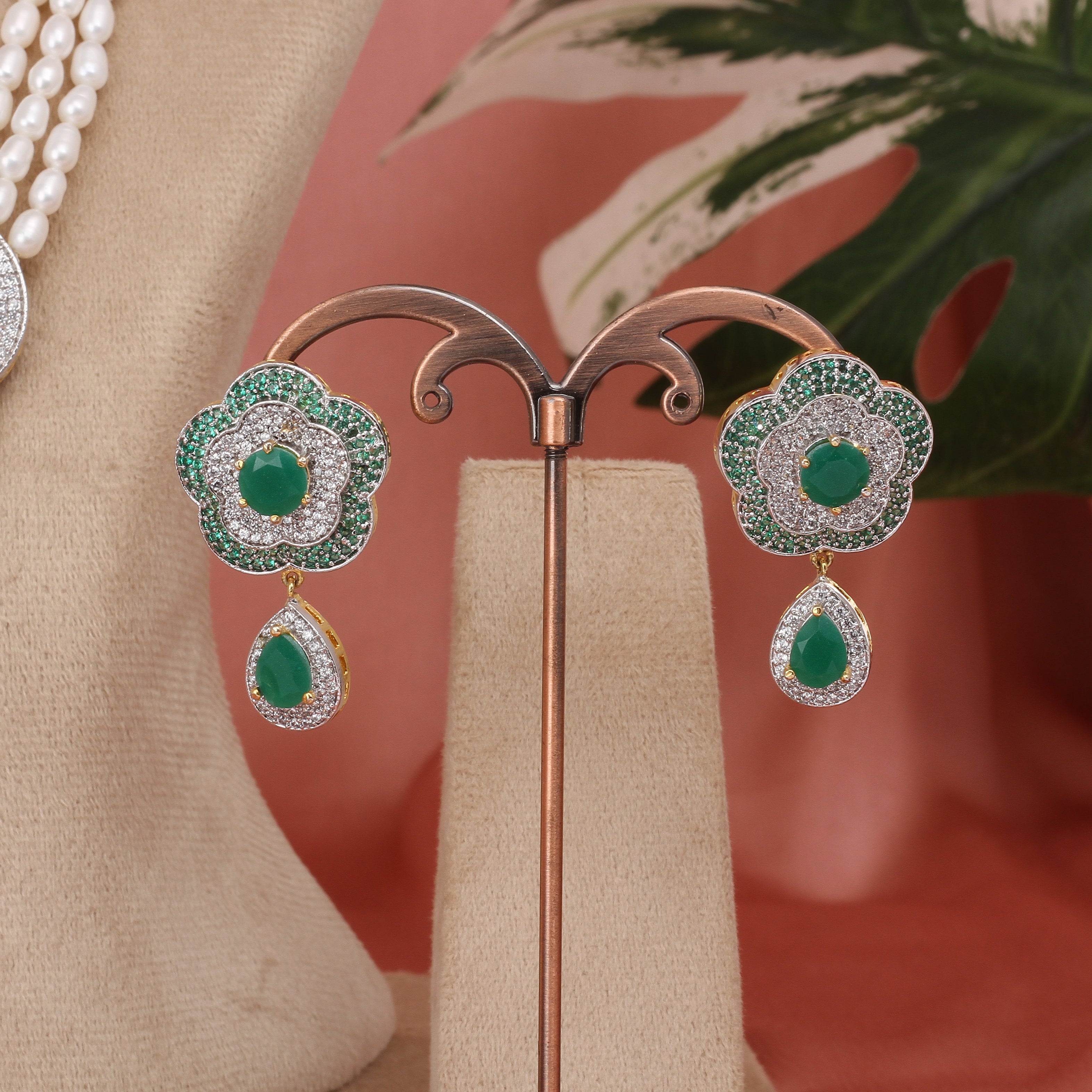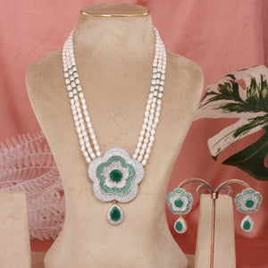 - Pendant Set Information - Made With Micro Size AD/Zirkon Stones Studded In It With Base Of Silver N Alloy Metal