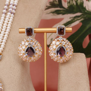 - Pendant Set Information - Made With Micro Size AD/Zirkon Stones Studded In It With Base Of Silver N Alloy Metal