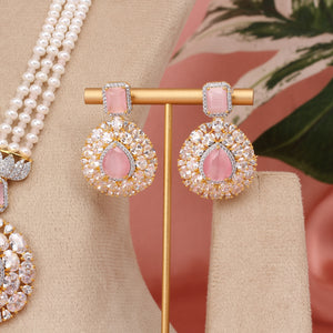 - Pendant Set Information - Made With Micro Size AD/Zirkon Stones Studded In It With Base Of Silver N Alloy Metal