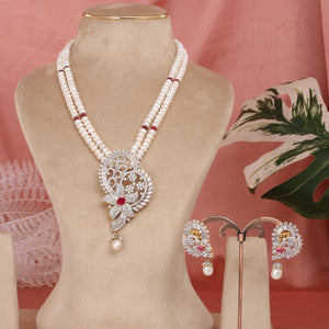 - Pendant Set Information - Made With Micro Size AD/Zirkon Stones Studded In It With Base Of Silver N Alloy Metal
