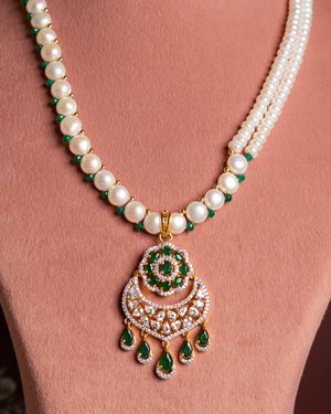 - Pendant Set Information - Made With Micro Size AD/Zirkon Stones Studded In It With Base Of Silver N Alloy Metal