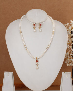 Authentic Natural Freshwater Single String Real Pearl Necklace Set With Certificate(D.No ADPRLS2903)