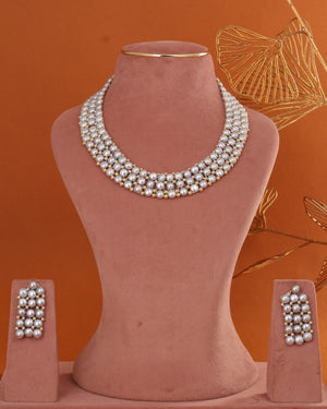 Authentic Real Natural Fresh Water Button Pearl Necklace Set With Certificate(D.No ADPRLS2863)