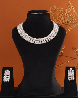 Authentic Real Natural Fresh Water Button Pearl Necklace Set With Certificate(D.No ADPRLS2865)