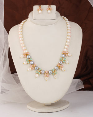 Crafted with high-quality craftsmanship, the set includes a stunning necklace, matching earrings, all designed to enhance any outfit—whether it’s for a special occasion or everyday wear. The soft, iridescent hues of the pearls range from classic whites to subtle pinks, adding a touch of warmth and refinement.