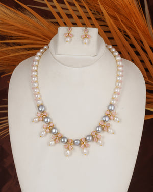 Crafted with high-quality craftsmanship, the set includes a stunning necklace, matching earrings, all designed to enhance any outfit—whether it’s for a special occasion or everyday wear. The soft, iridescent hues of the pearls range from classic whites to subtle pinks, adding a touch of warmth and refinement.