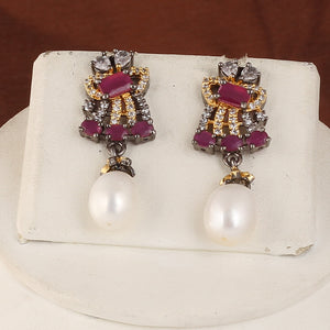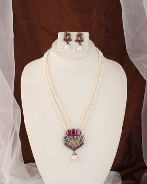 - Pendant Set Information - Made With Micro Size AD/Zirkon Stones Studded In It With Base Of Silver N Alloy Metal