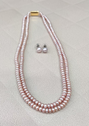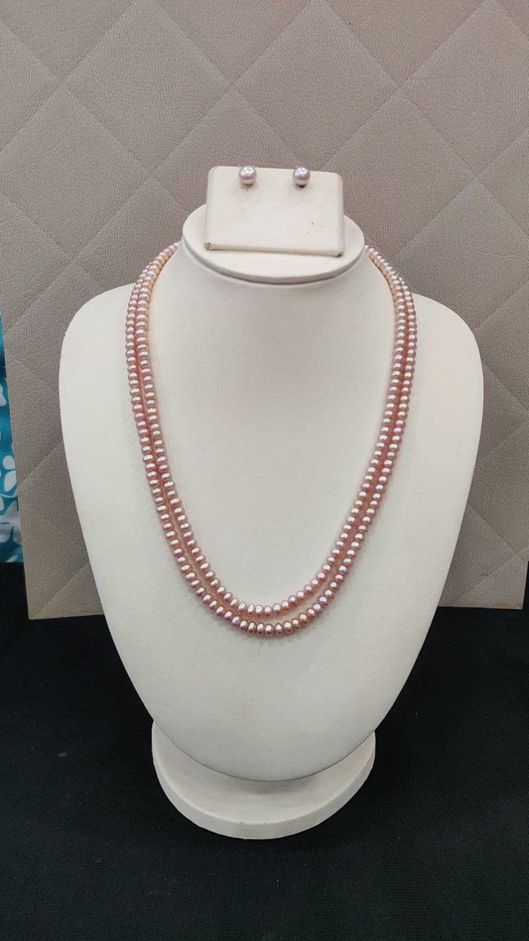 Authentic Real Natural Fresh Water Double Line Pearls Mala Set 3 MM With Certificate(D.No NPS342)