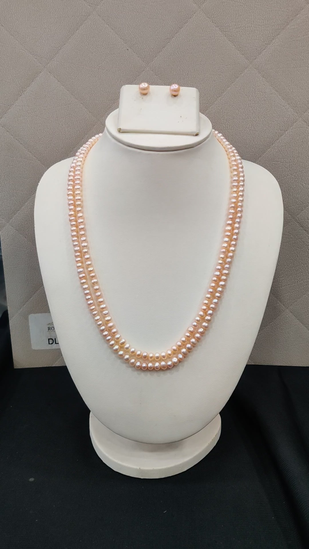 Authentic Real Natural Fresh Water Double Line Pearls Mala Set 3 MM With Certificate(D.No NPS345)