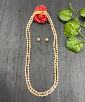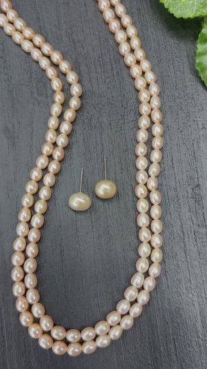 Authentic Real Natural Fresh Water Double Line Pearls Mala Set 3 To 4 MM With Certificate(D.No NPS351)