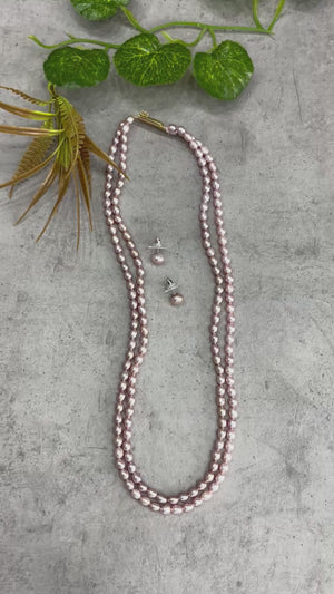 Authentic Real Natural Fresh Water Double Line Pearls Mala Set 3 To 4 MM With Certificate(D.No NPS354)