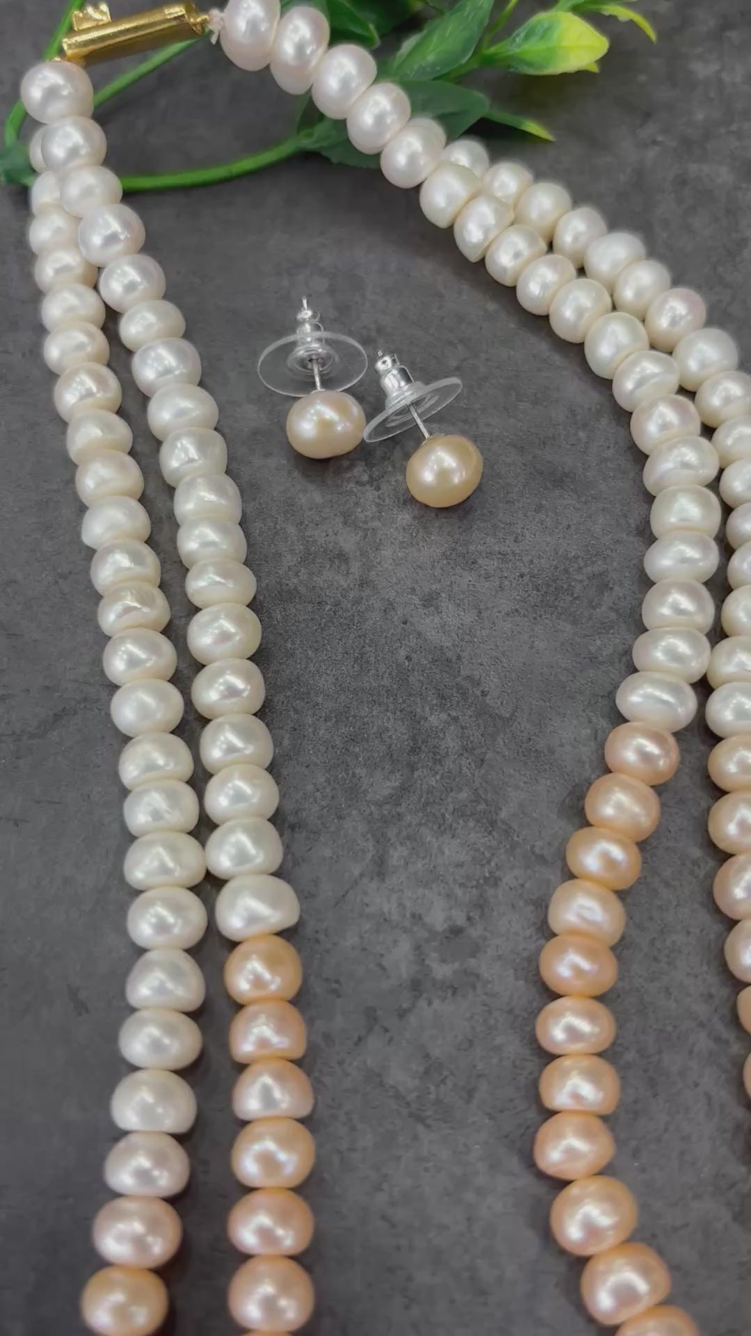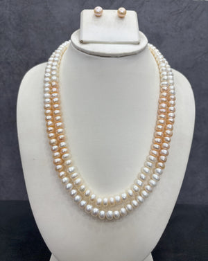 Authentic Real Natural Fresh Water Double Line Pearls Mala Set 6 MM With Certificate(D.No NPS348)