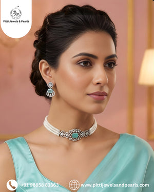 Our exquisite Natural Freshwater Choker Pearls Set, a timeless collection that embodies elegance and sophistication. Each pearl in this set is uniquely shaped, showcasing the organic beauty and luster that only nature can create.