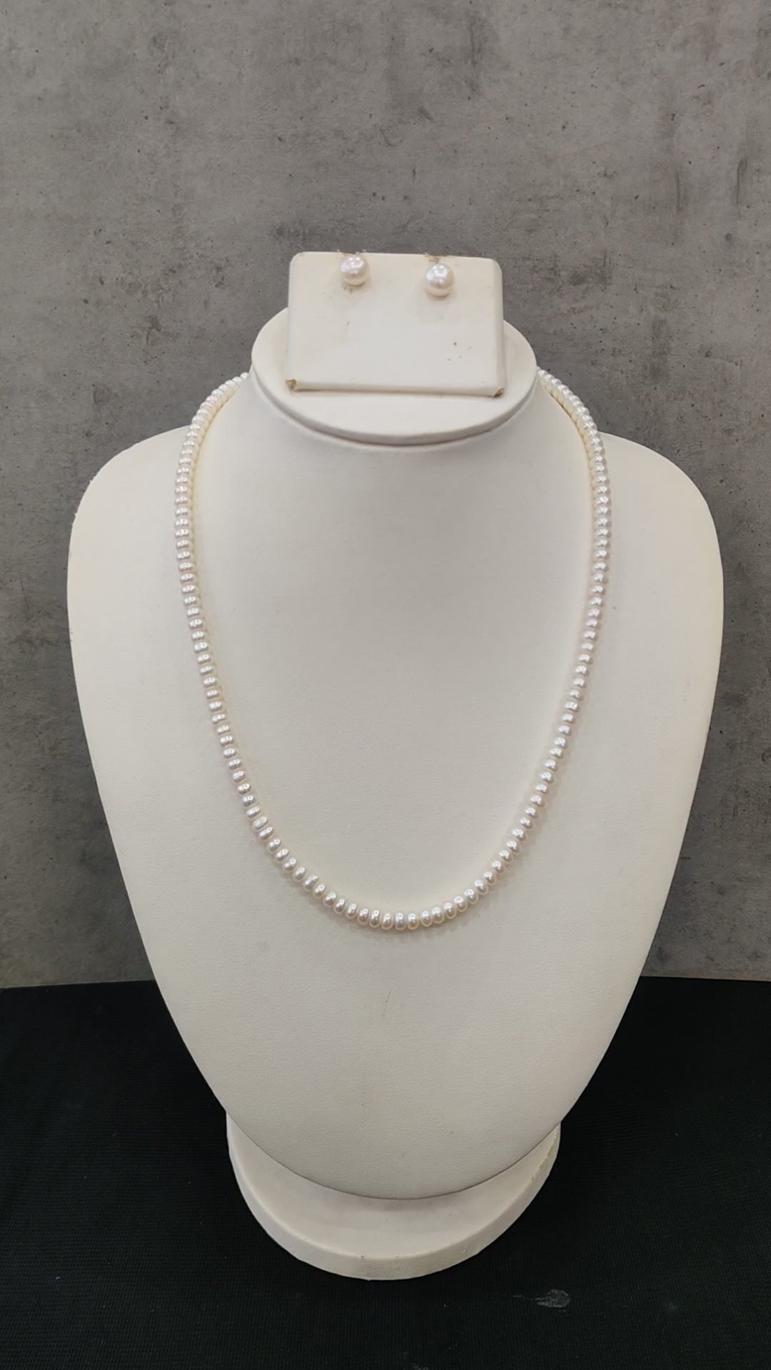 Authentic Real Natural Fresh Water Single Line Pearls Mala Set 3 MM With Certificate(D.No NPS338)