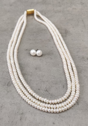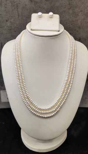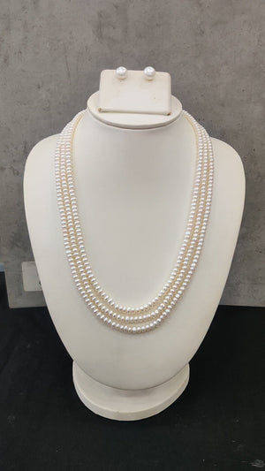 Authentic Real Natural Fresh Water Triple Line Pearls Mala Set 3 MM With Certificate(D.No NPS340)