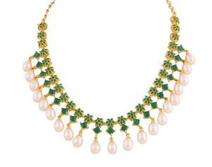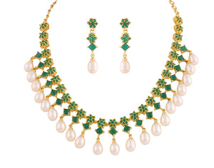 Beautiful Cz Stone Studded Necklace Set For Women With Real Pearl Drops With Certificate(D.No ADPRLS2009)