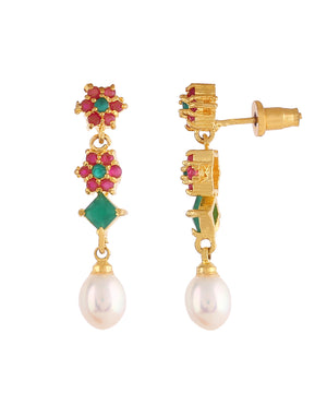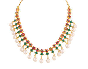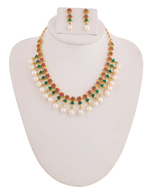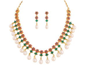 Beautiful Cz Stone Studded Necklace Set For Women With Real Pearl Drops With Certificate(D.No ADPRLS2010)