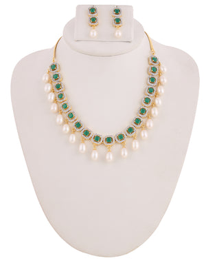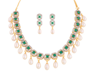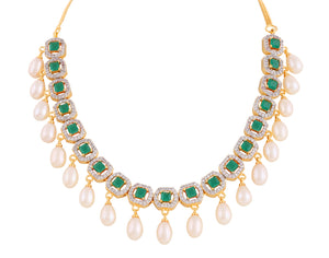 Beautiful Cz Stone Studded Necklace Set For Women With Real Pearl Drops With Certificate(D.No ADPRLS2011)
