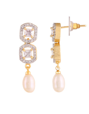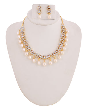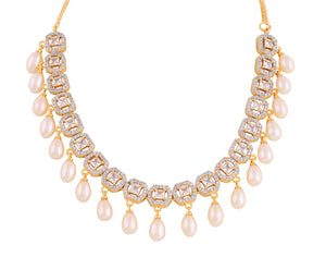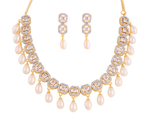 Beautiful Cz Stone Studded Necklace Set For Women With Real Pearl Drops With Certificate(D.No ADPRLS2013)