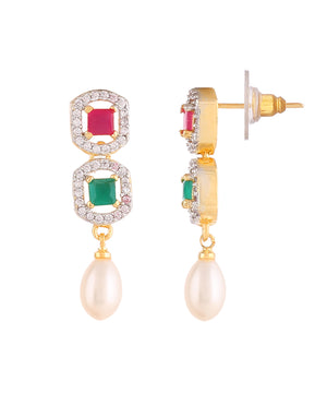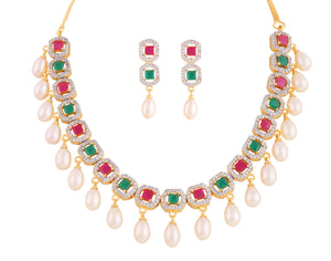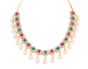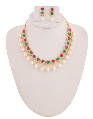 Beautiful Cz Stone Studded Necklace Set For Women With Real Pearl Drops With Certificate(D.No ADPRLS2014)