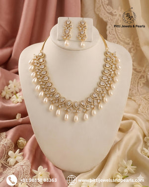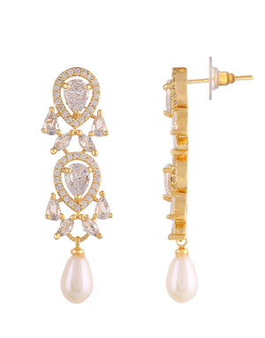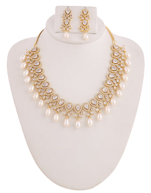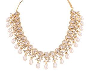 Beautiful Cz Stone Studded Necklace Set For Women With Real Pearl Drops With Certificate(D.No ADPRLS2015)