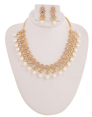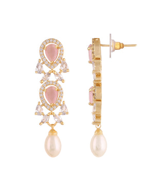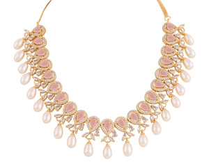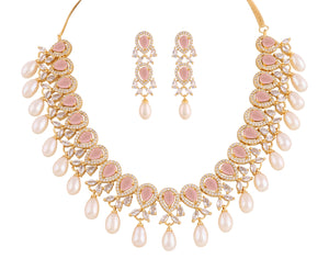 Beautiful Cz Stone Studded Necklace Set For Women With Real Pearl Drops With Certificate(D.No ADPRLS2018)