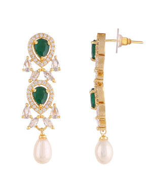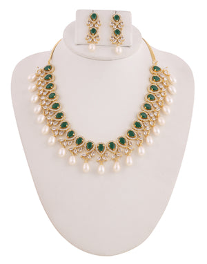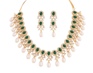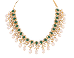 Beautiful Cz Stone Studded Necklace Set For Women With Real Pearl Drops With Certificate(D.No ADPRLS2019)