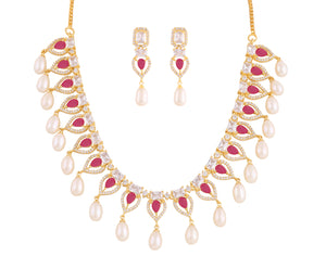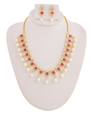Beautiful Cz Stone Studded Necklace Set For Women With Real Pearl Drops With Certificate(D.No ADPRLS2022)