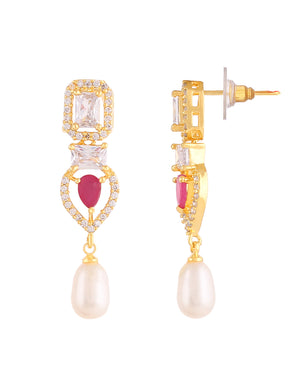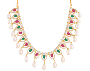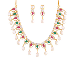 Beautiful Cz Stone Studded Necklace Set For Women With Real Pearl Drops With Certificate(D.No ADPRLS2023)