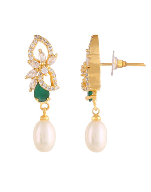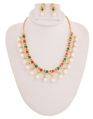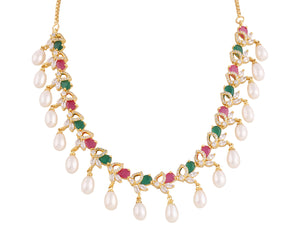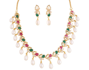 Beautiful Cz Stone Studded Necklace Set For Women With Real Pearl Drops With Certificate(D.No ADPRLS2025)