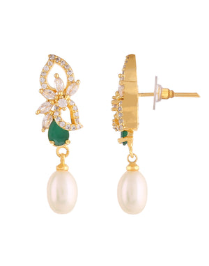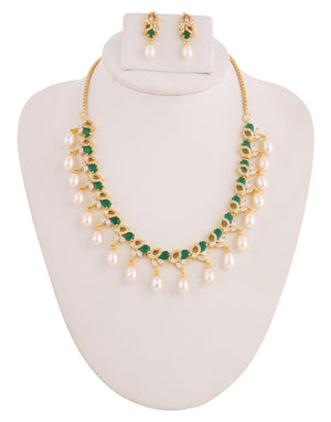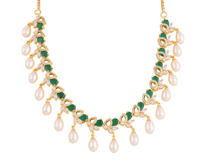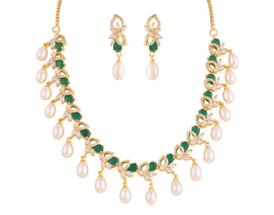 Beautiful Cz Stone Studded Necklace Set For Women With Real Pearl Drops With Certificate(D.No ADPRLS2027)
