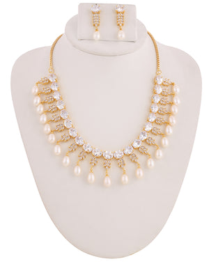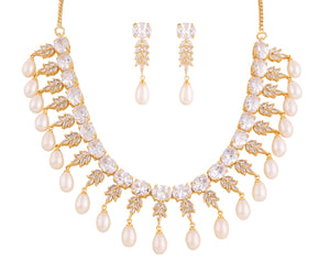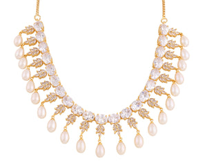 Beautiful Cz Stone Studded Necklace Set For Women With Real Pearl Drops With Certificate(D.No ADPRLS2028)