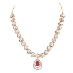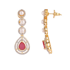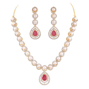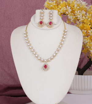 Beautiful Elegant Cz Stone N Real Button Pearls Necklace Set For Women With Certificate(D.No ADPRLS2032)