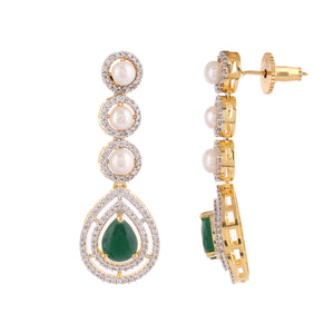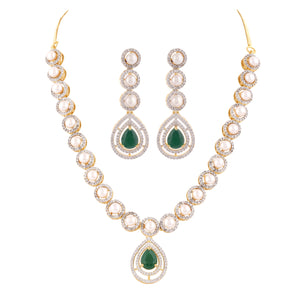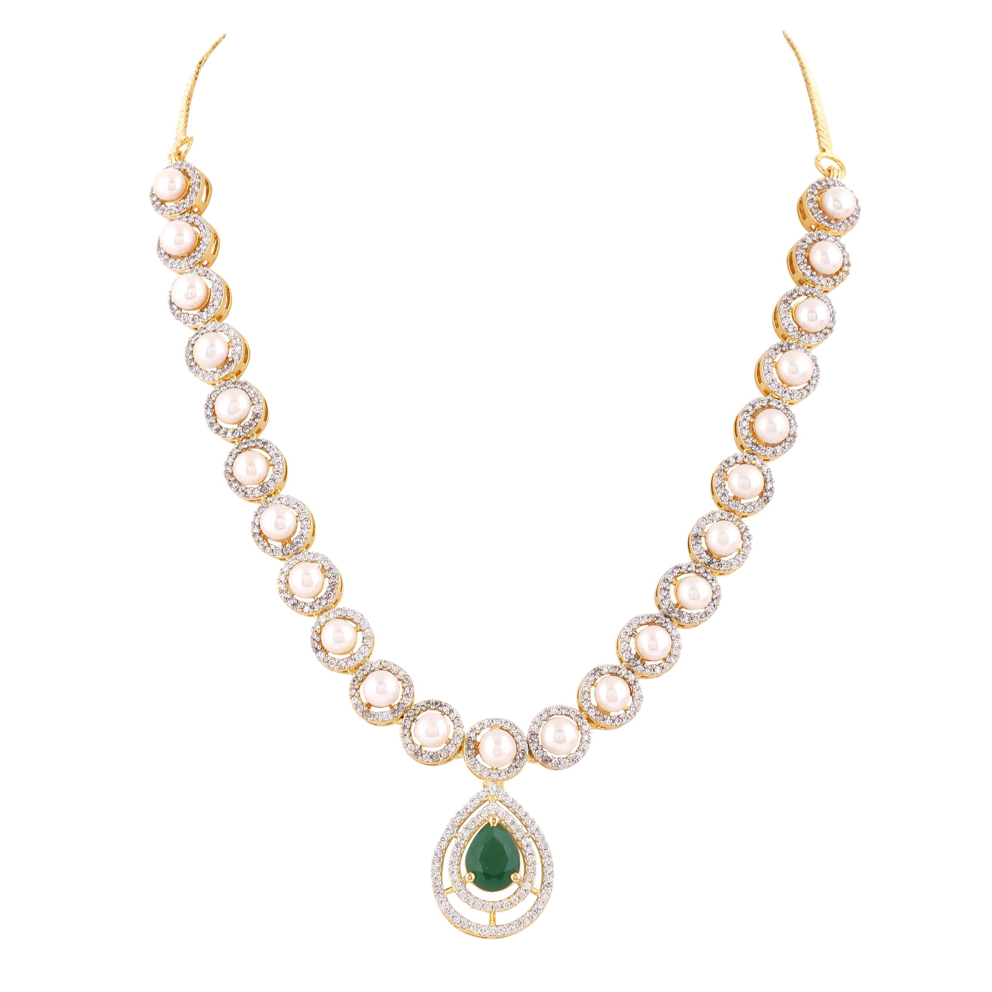 Beautiful Elegant Cz Stone N Real Button Pearls Necklace Set For Women With Certificate(D.No ADPRLS2033)