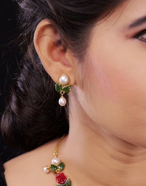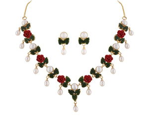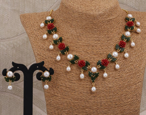 Ceramic Flower Necklace Set With Real Pearl Drops With Certificate(D.No ADPRLS860)