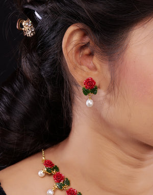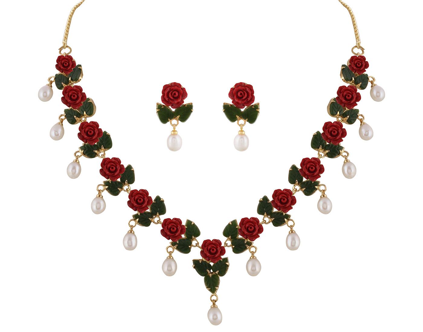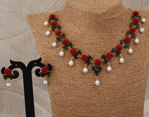 Ceramic Flower Necklace Set With Real Pearl Drops With Certificate(D.No ADPRLS865)