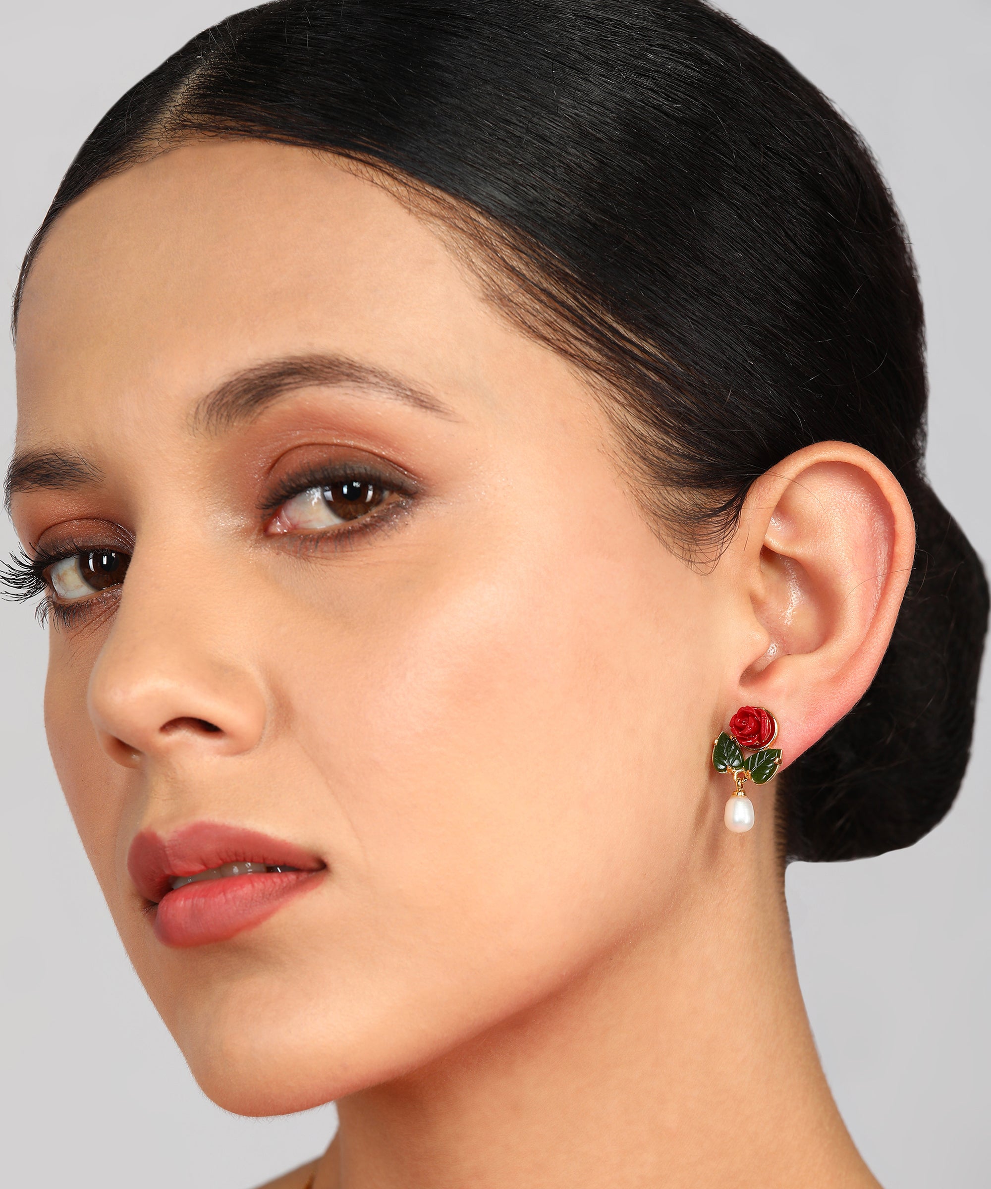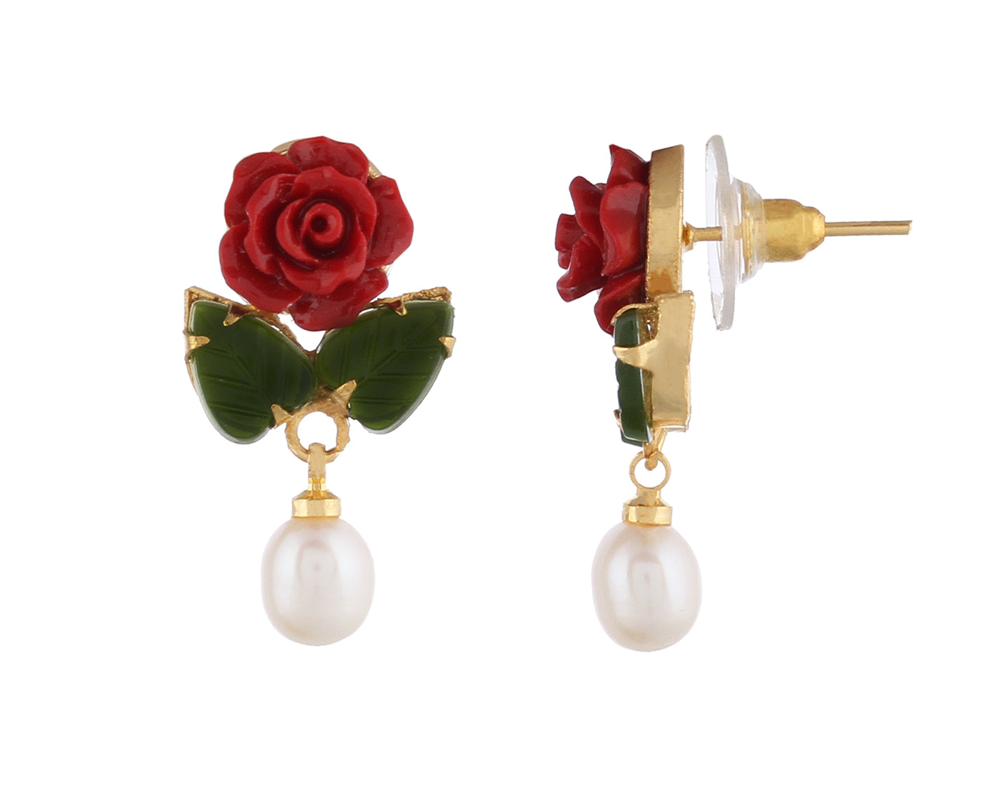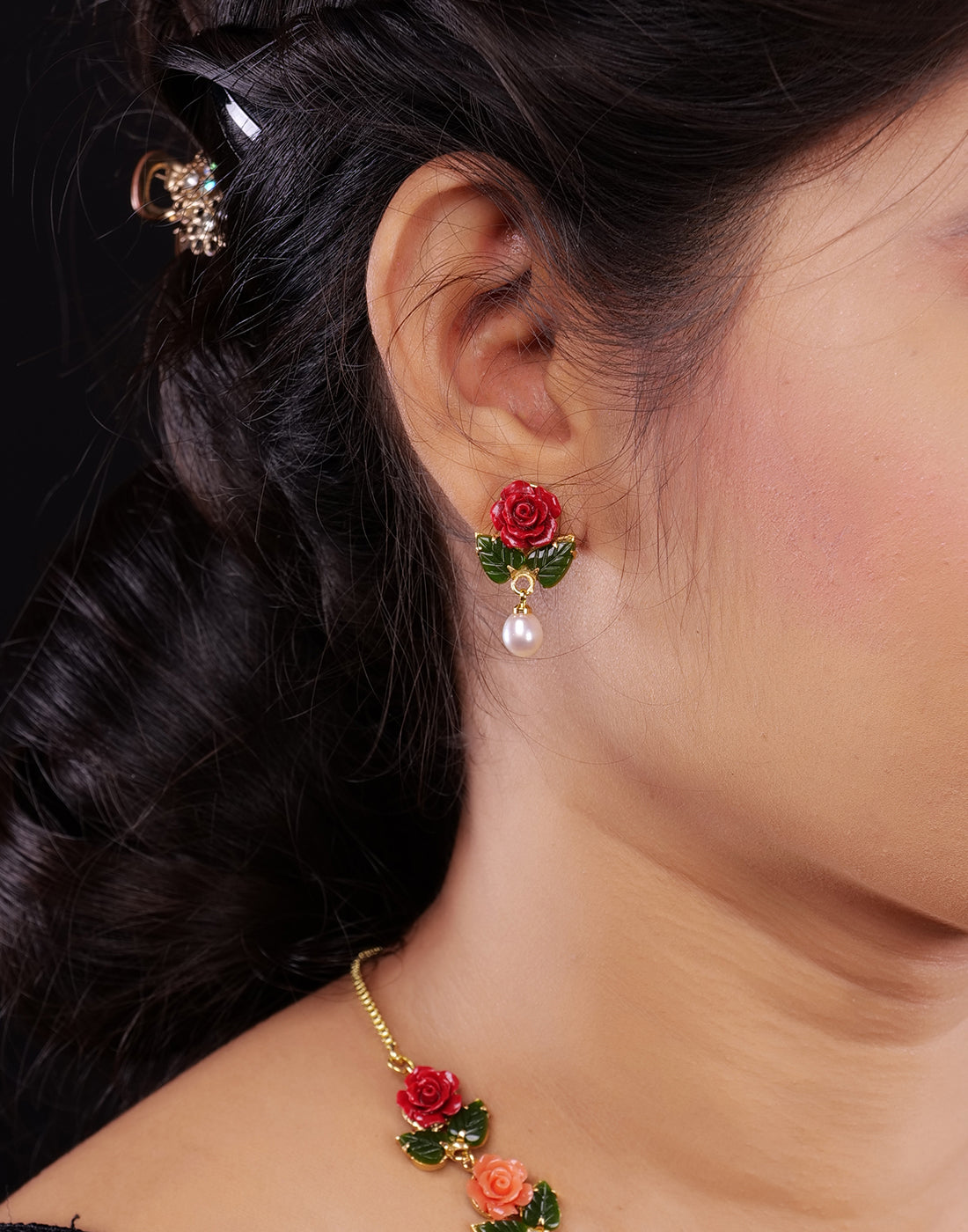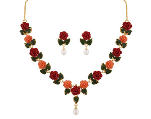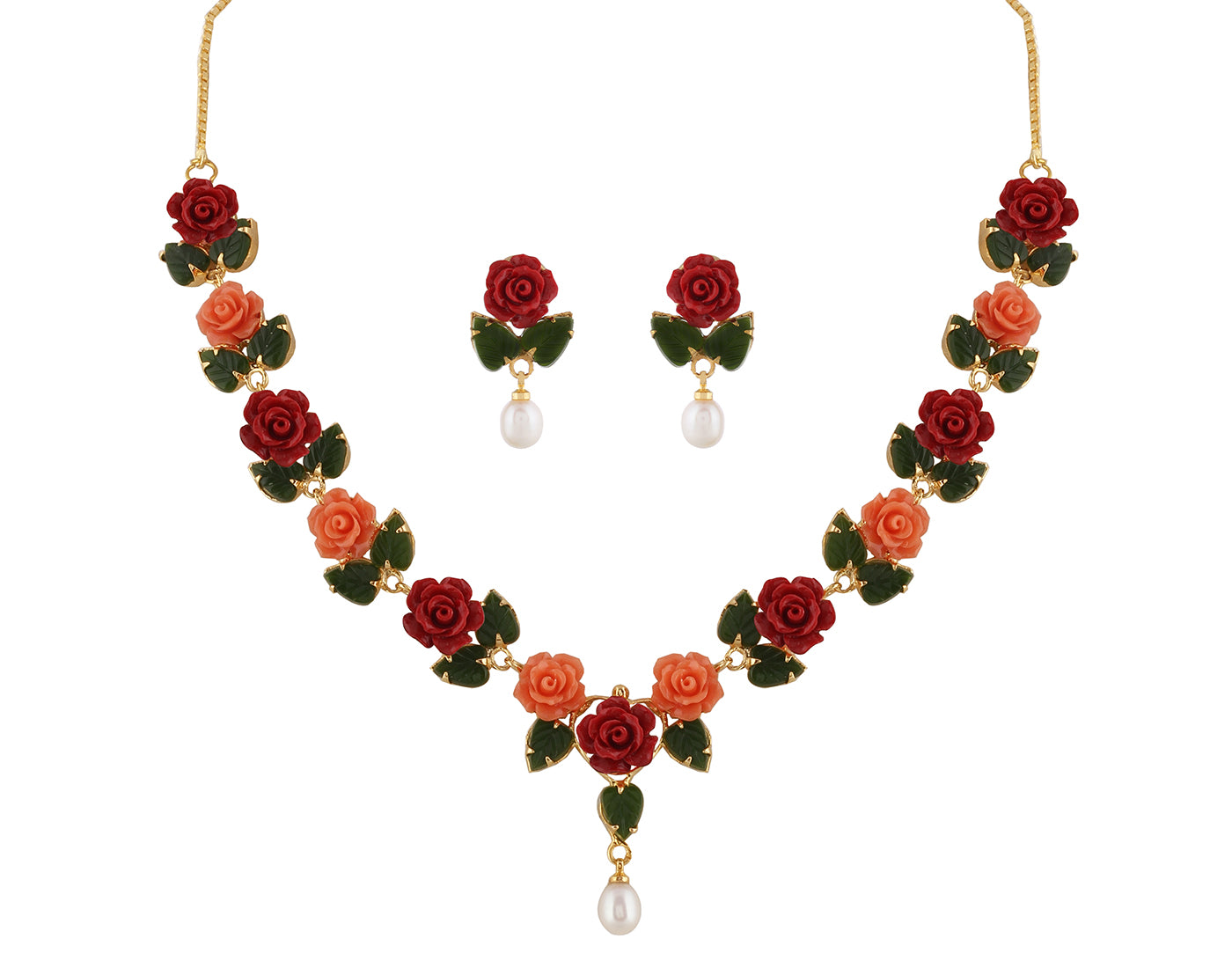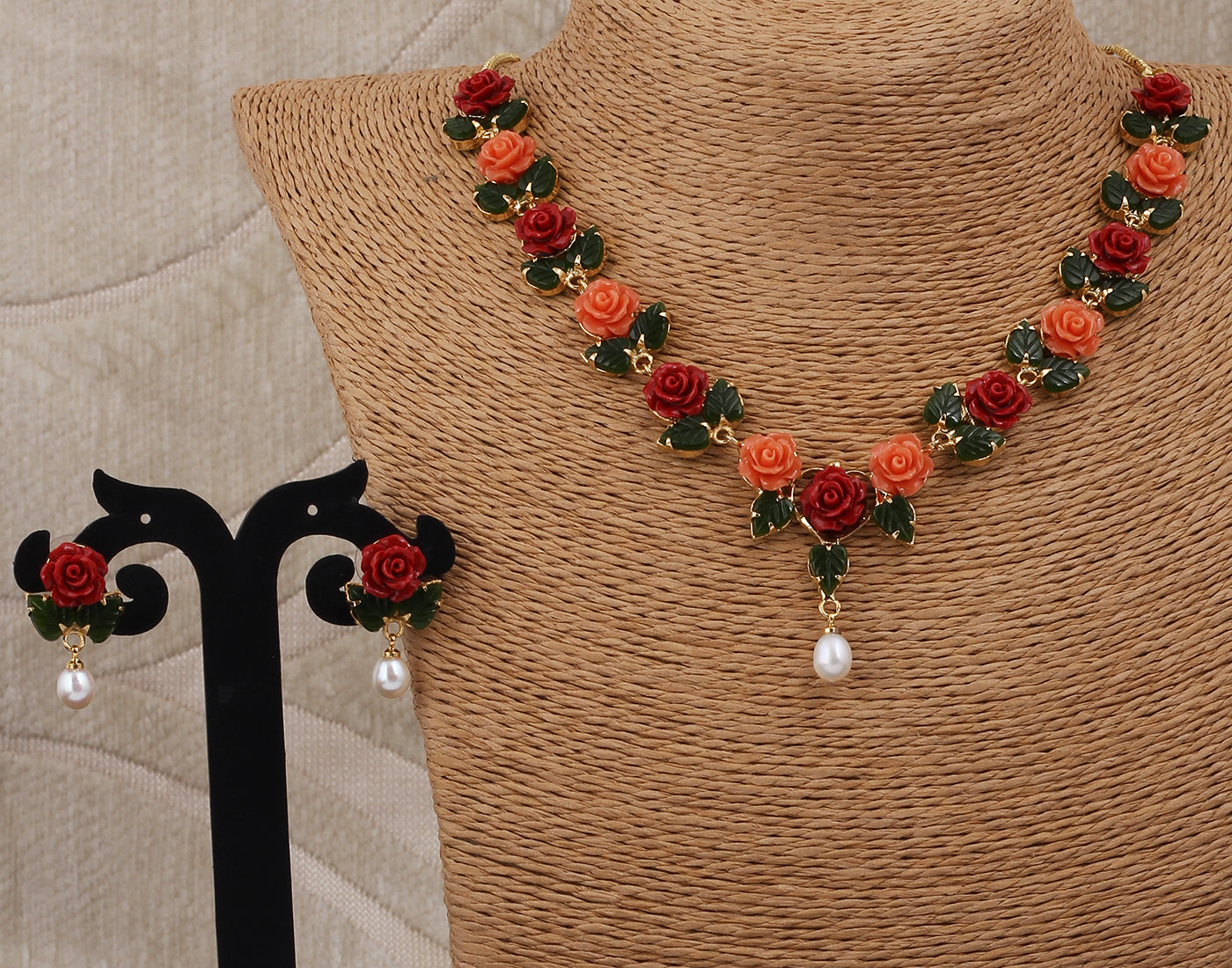 Ceramic Flower Necklace Set With Real Pearl Drops With Certificate(D.No ADPRLS867)