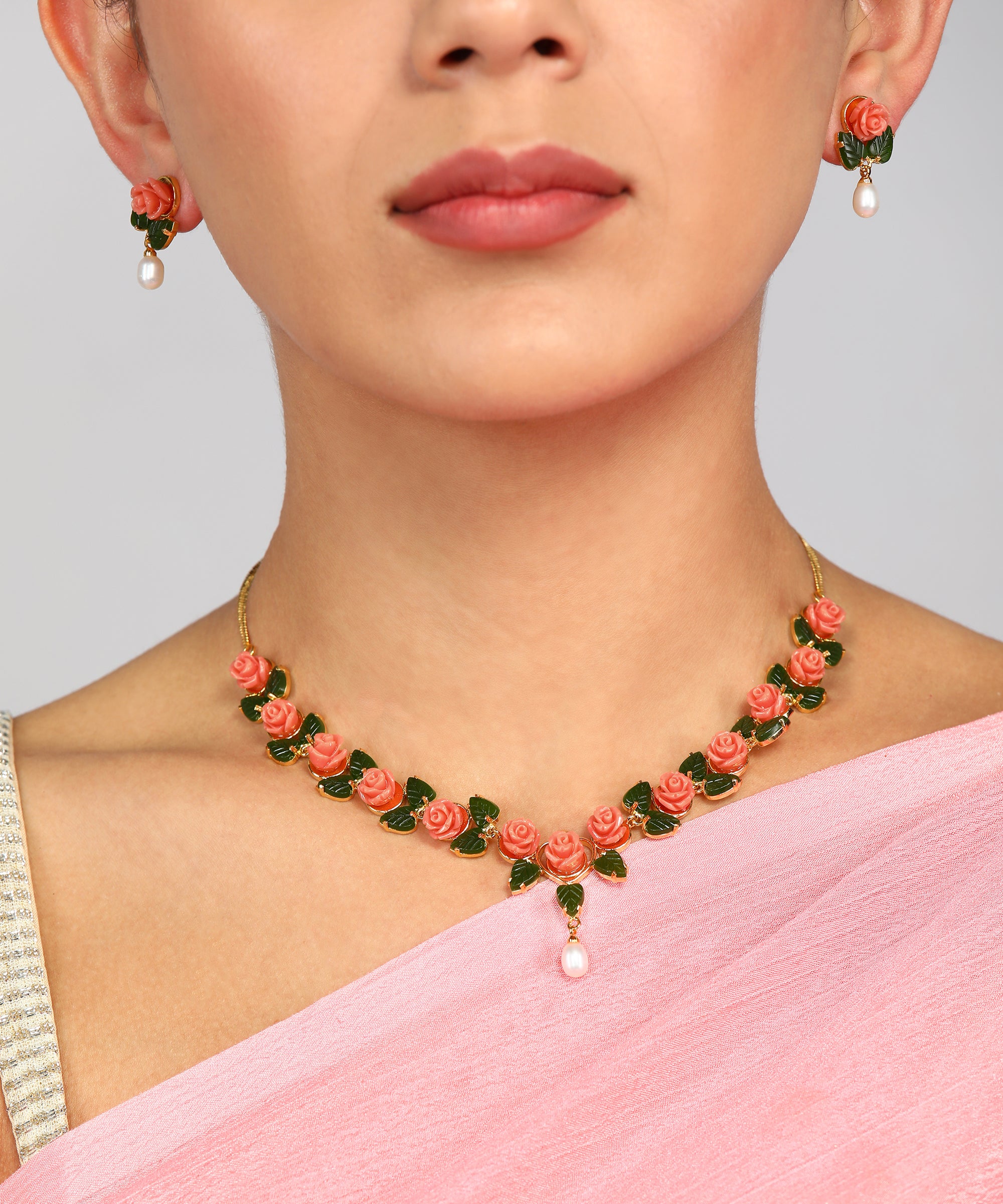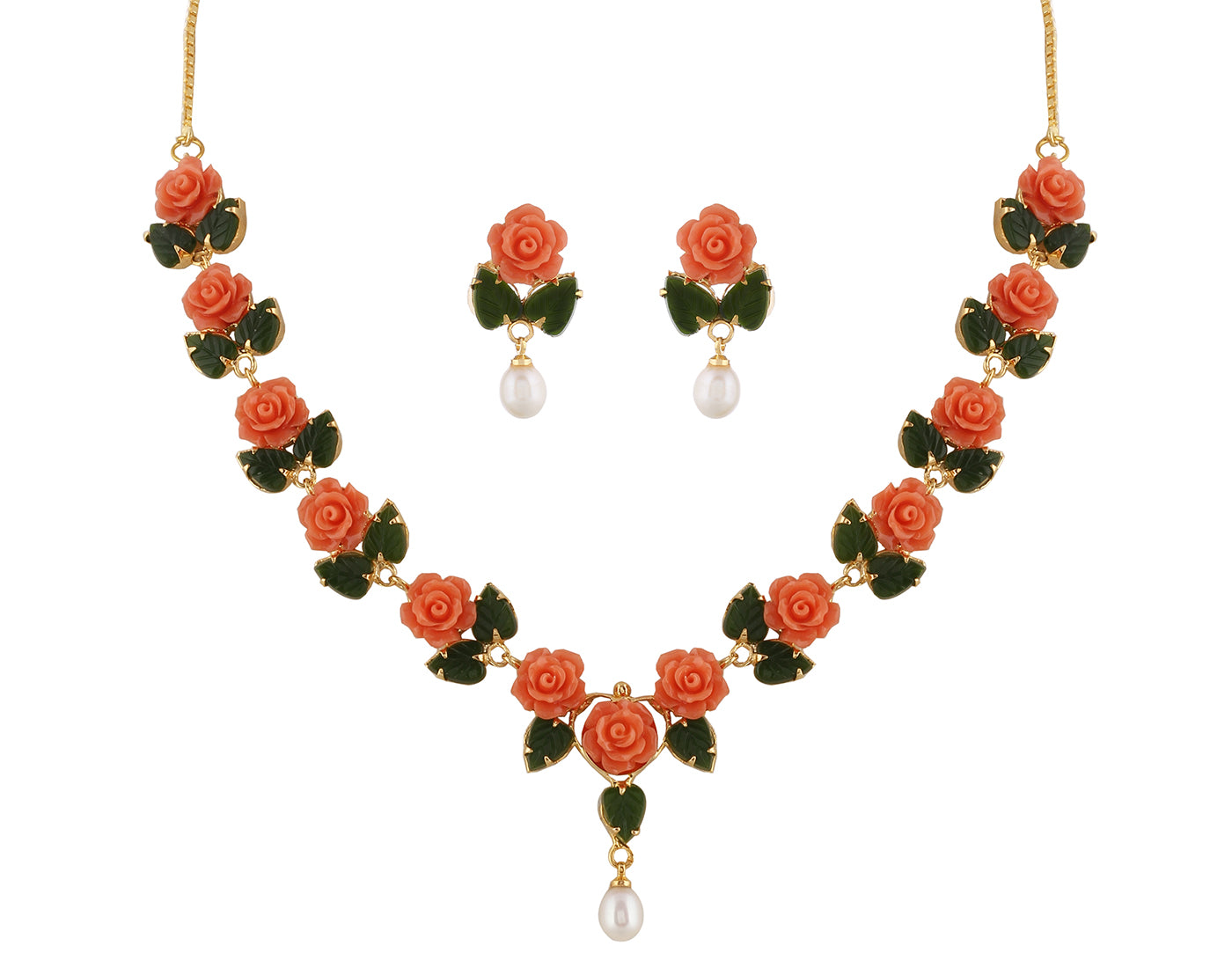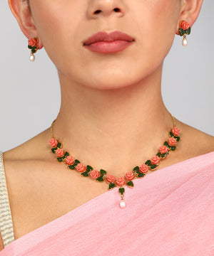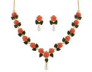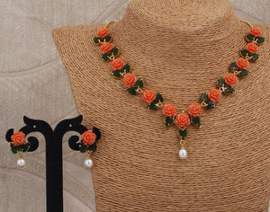 Ceramic Flower Necklace Set With Real Pearl Drops With Certificate(D.No ADPRLS868)