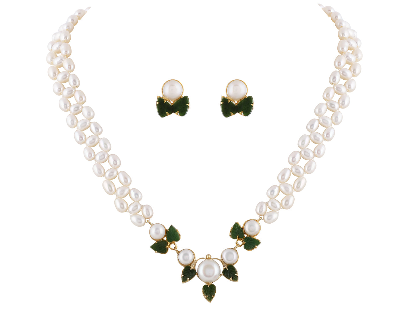 Ceramic Flower Necklace Set With Real Pearl With Certificate(D.No ADPRLS915)