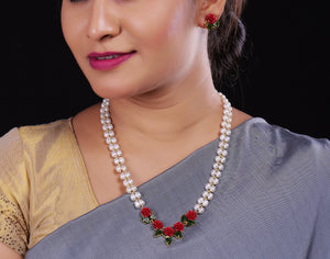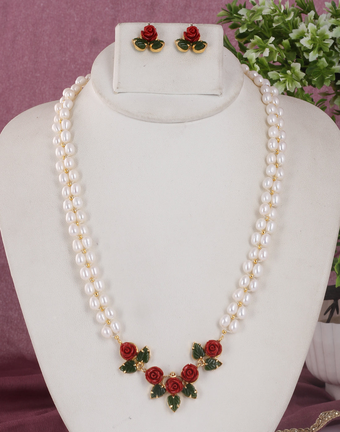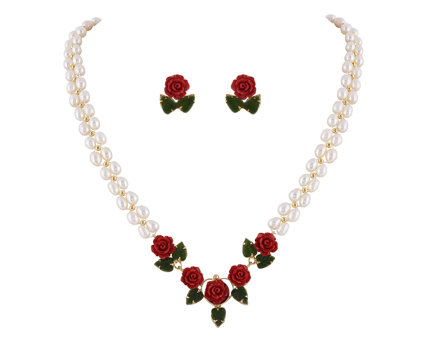 Ceramic Flower Necklace Set With Real Pearl With Certificate(D.No ADPRLS916)