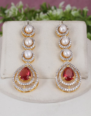 Cz Stone Studded Necklace Set With Real Button Pearl With Certificate(D.No ADPRLS1798)