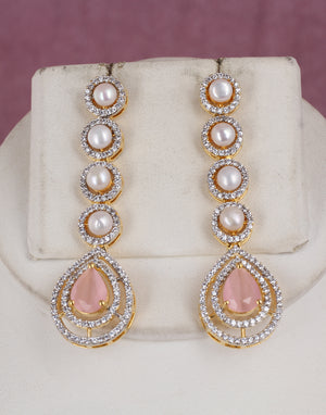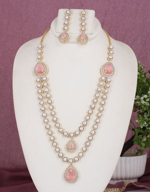 Cz Stone Studded Necklace Set With Real Button Pearl With Certificate(D.No ADPRLS1805)