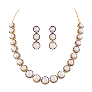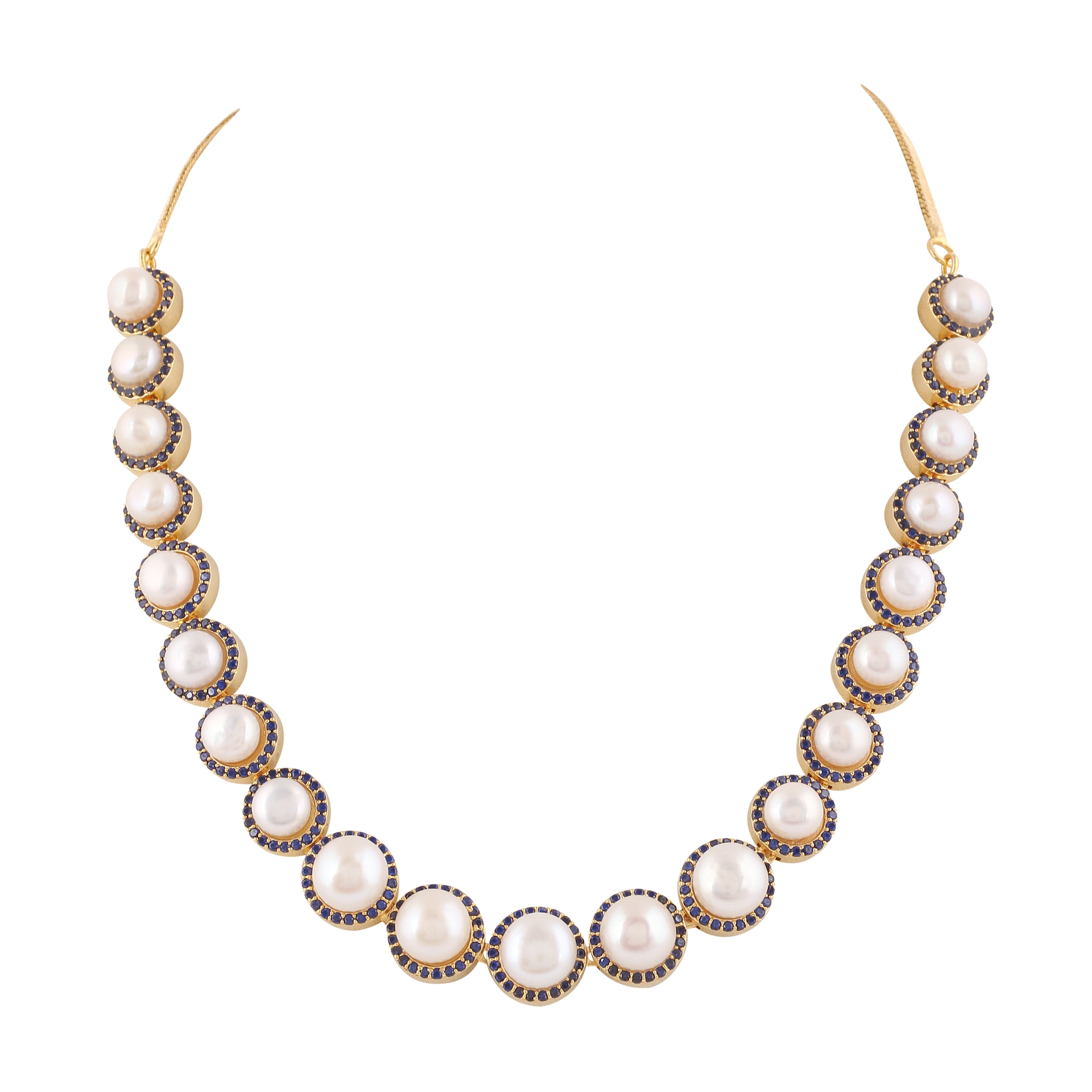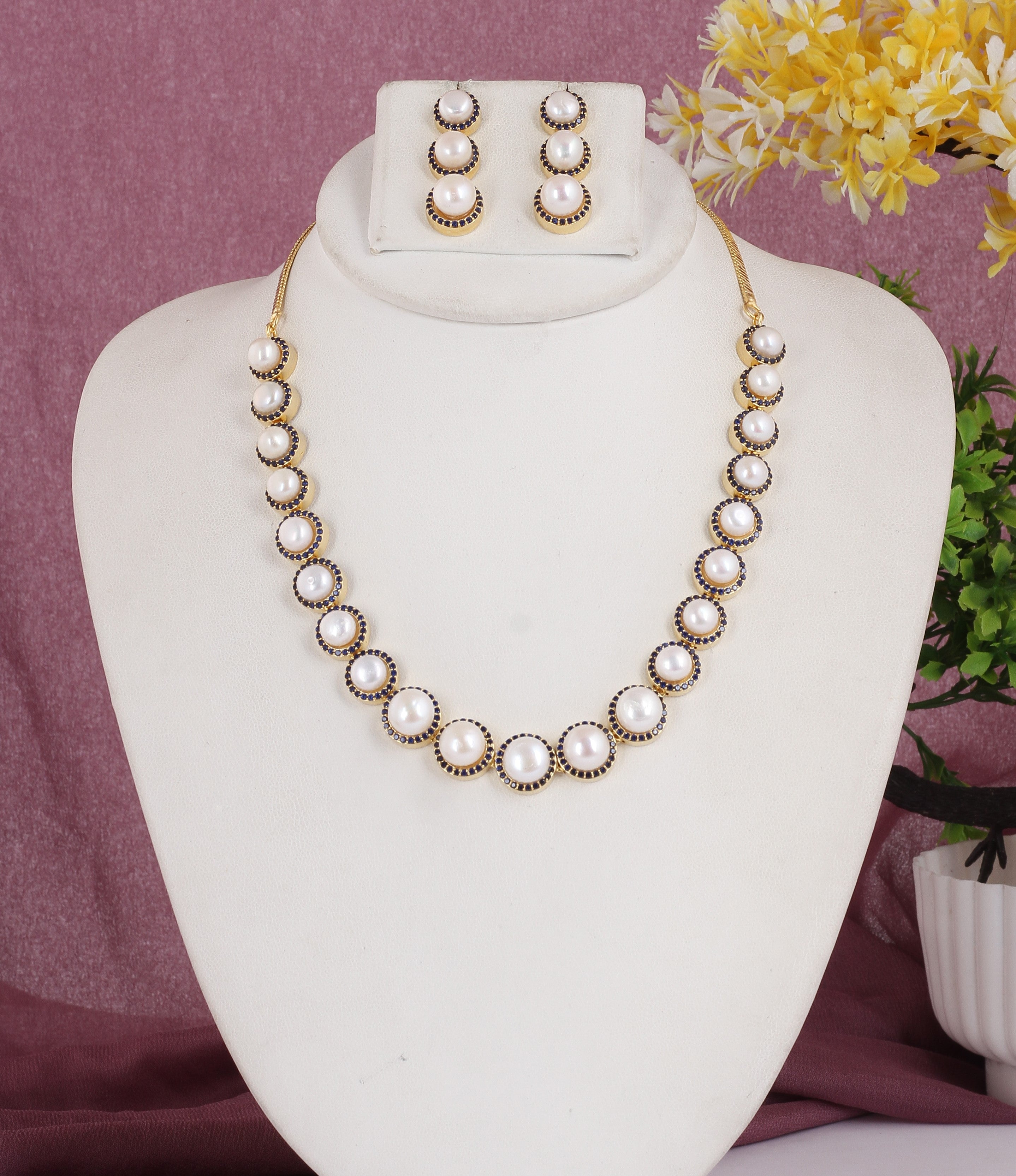 Cz Stone Studded Necklace Set With Real Button Pearls And Certificate For Pearls(D.No ADPRLS2061)