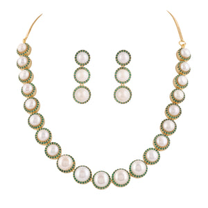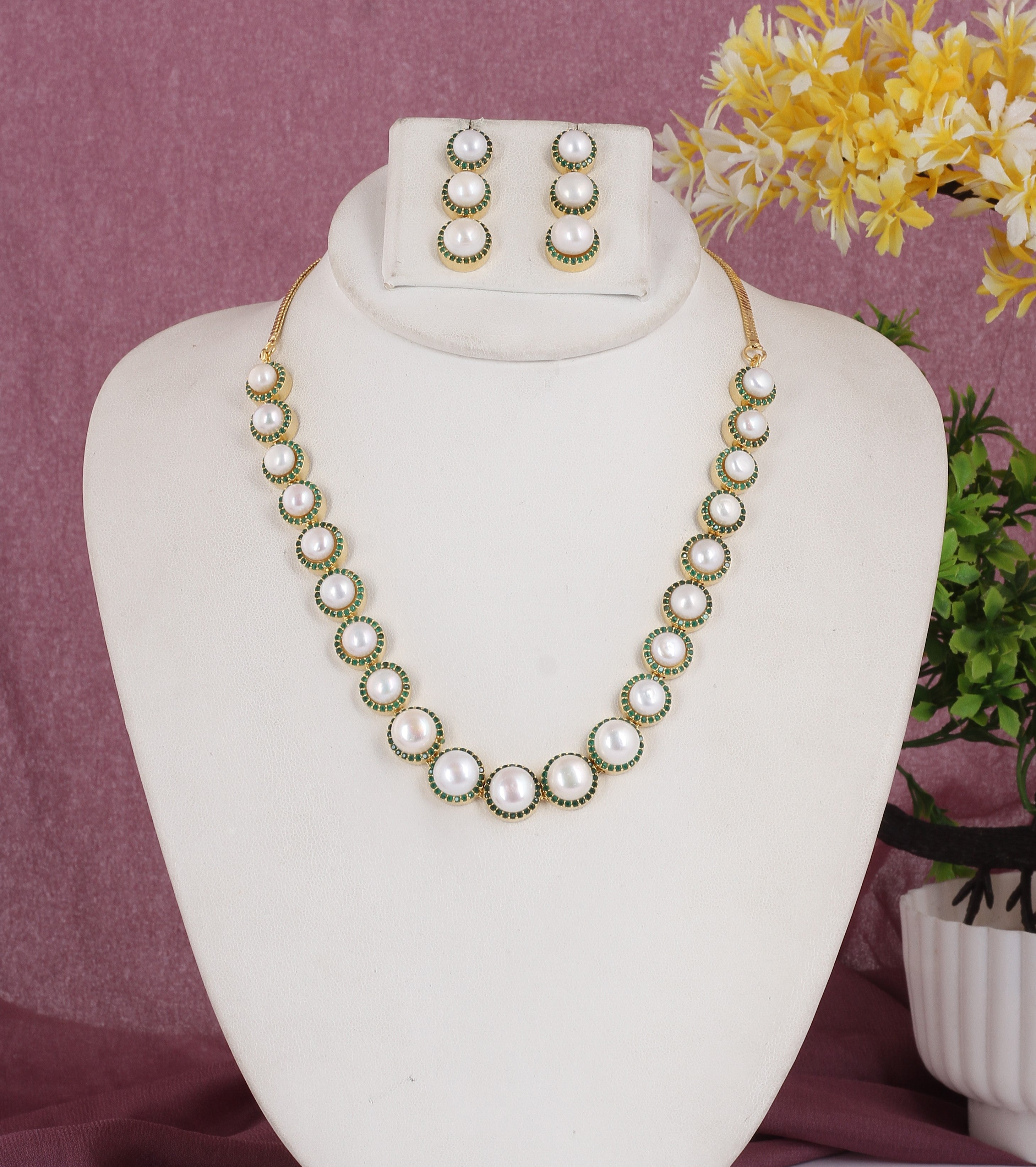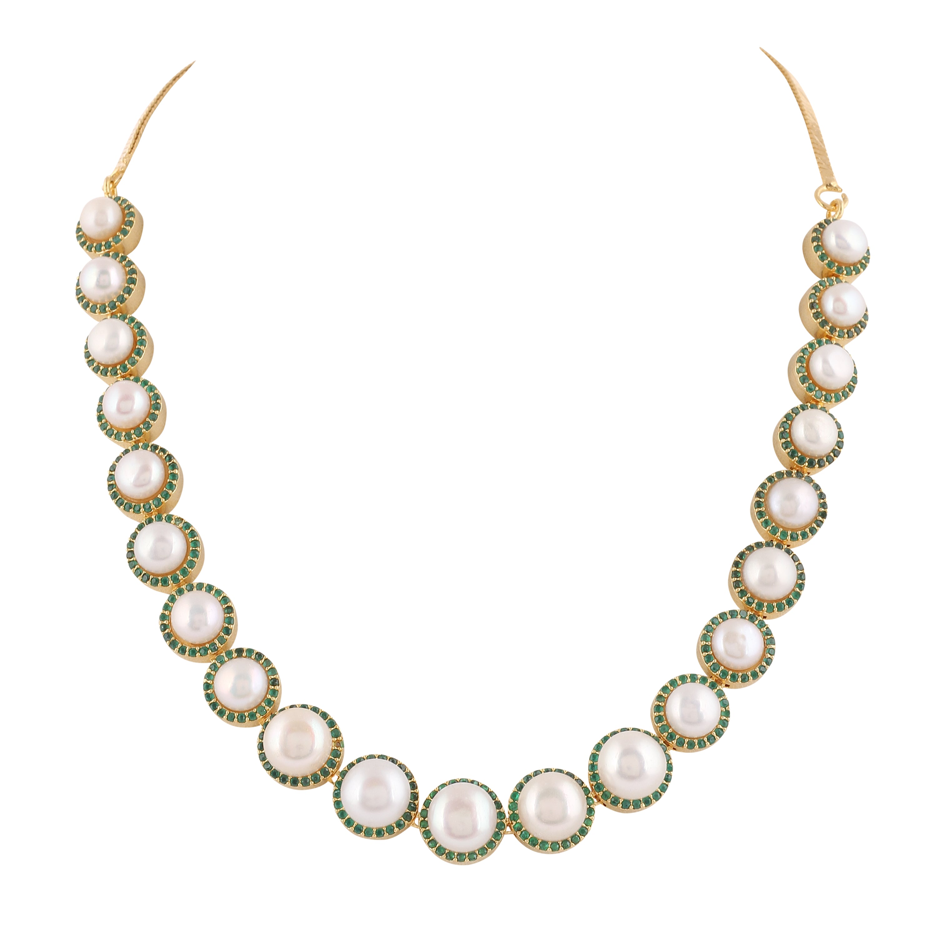 Cz Stone Studded Necklace Set With Real Button Pearls And Certificate For Pearls(D.No ADPRLS2063)