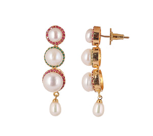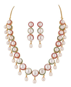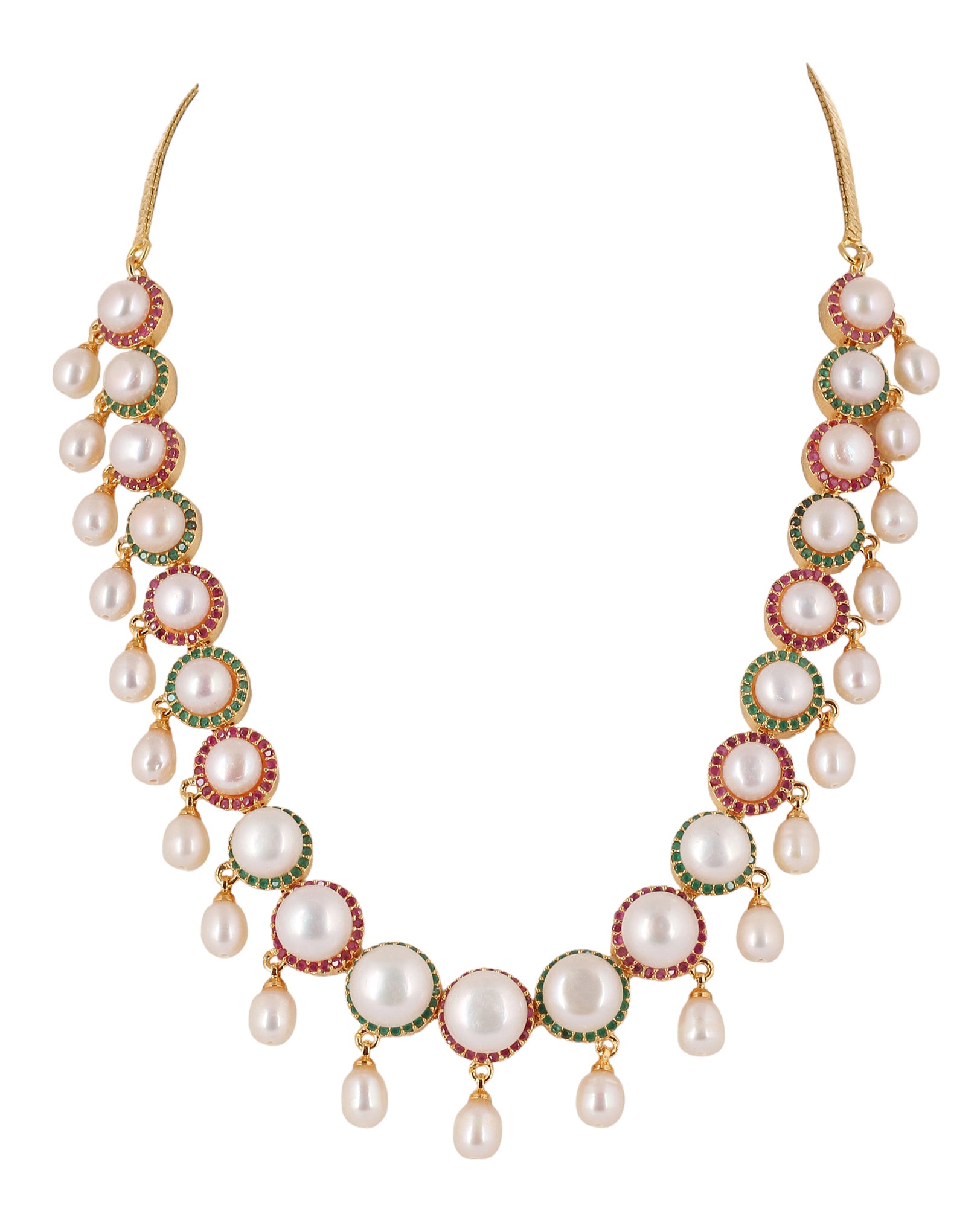 Cz Stone Studded Necklace Set With Real Button Pearls And Pearl Drops n Certificate For Pearls(D.No ADPRLS2065)