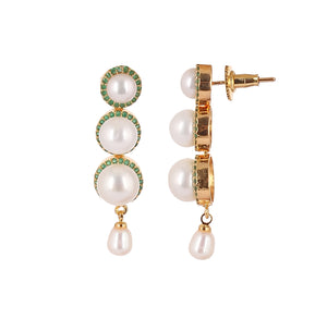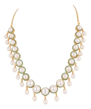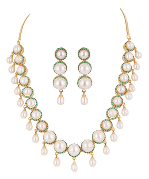 Cz Stone Studded Necklace Set With Real Button Pearls And Pearl Drops n Certificate For Pearls(D.No ADPRLS2066)