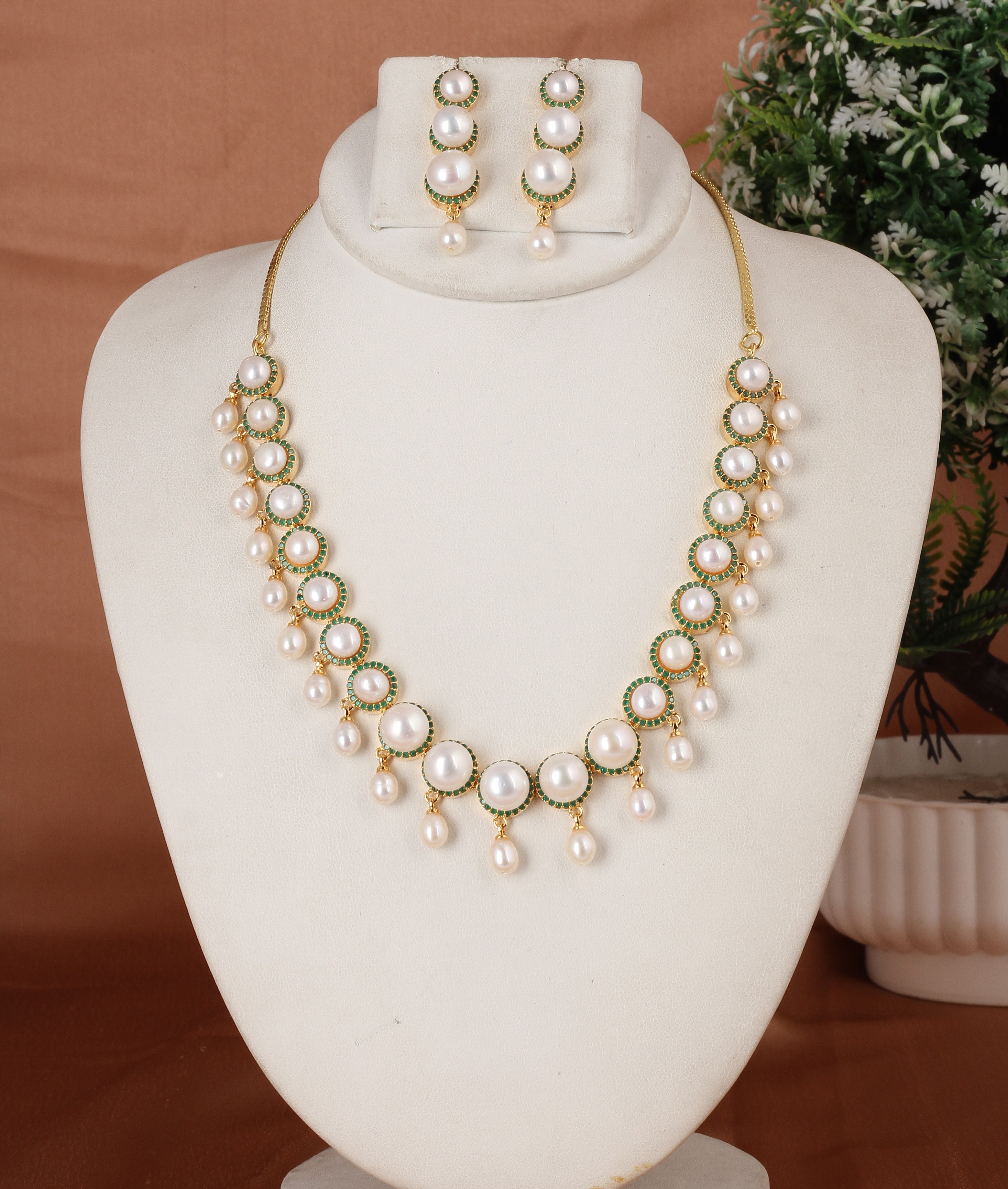 Crafted with high-quality craftsmanship, the set includes a stunning necklace, matching earrings, all designed to enhance any outfit—whether it’s for a special occasion or everyday wear. The soft, iridescent hues of the pearls range from classic whites to subtle pinks, adding a touch of warmth and refinement.